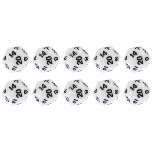 НАБОР ИЗ 10 КУБИКОВ K20 RPG БЕЛЫЙ ИКОСАЭДРИЧЕСКИЙ