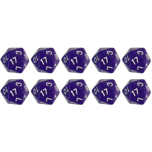 Komplet dziesięciu kości dwudziestościennych. Niezwykle wysoka jakość odlewu, precyzja żłobienia oraz malowania numerów czynią z nich podstawowy wybór dla wielu graczy, zarówno początkujących, jak i zaawansowanych.