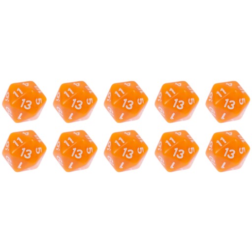 Komplet dziesięciu kości dwudziestościennych. Niezwykle wysoka jakość odlewu, precyzja żłobienia oraz malowania numerów czynią z nich podstawowy wybór dla wielu graczy, zarówno początkujących, jak i zaawansowanych.