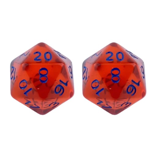 Komplet dwóch kości dwudziestościennych. Niezwykle wysoka jakość odlewu, precyzja żłobienia oraz malowania numerów czynią z nich podstawowy wybór dla wielu graczy, zarówno początkujących, jak i zaawansowanych.