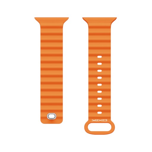 - Silikonowy pasek w kolorze pomarańczowym – matowy, przyjemny w dotyku i super wygodny dzięki swojej budowie, gwarantującej elastyczność.