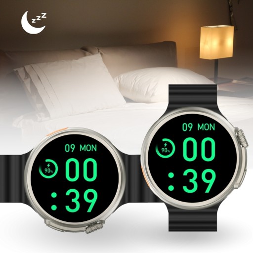 8. Zmiana orientacji ekranu (Bedside Mode) – w specjalnym trybie możesz zmienić orientację ekranu, gdy chcesz odłożyć zegarek obok łóżka na boku i zawsze widzieć godzinę, bez konieczności jego podnoszenia i obracania.
