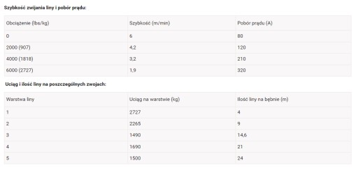 - Uciąg w poślizgu: 6000 lbs [2727 kg]