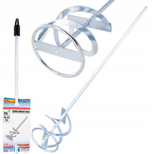 Mieszadło do zapraw murarskich o wymiarach 500 x 100 x 8 mm.