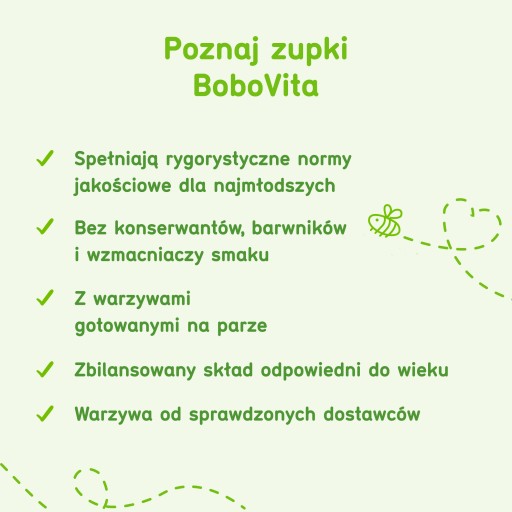 *Produkt dla niemowląt i małych dzieci zawiera składniki skontrolowane pod kątem bezpieczeństwa dla niemowląt. Skład dostosowany do wieku. Zgodnie z przepisami prawa nie zawiera konserwantów, barwników i wzmacniaczy smaku.