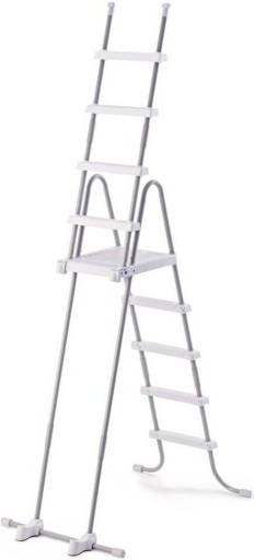 5-stopniowa drabinka basenowa ma mocną ramę ze stali nierdzewnej. Antypoślizgowe, solidne stopnie z tworzywa sztucznego są mocno przymocowane do ramy, zapewniając bezpieczny sposób dla pływaków na wchodzenie i wychodzenie z basenu. Stopnie na zewnątrz drabinki można złożyć, aby uniemożliwić dzieciom korzystanie z niej. Gdy basen nie jest używany, drabinkę można szybko odczepić i wyjąć.