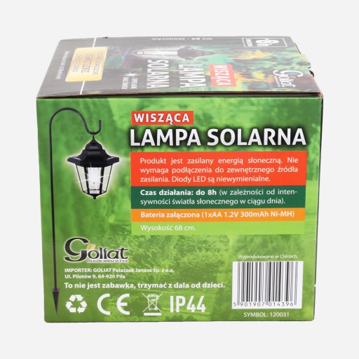 Lampa solarna wisząca to idealne uzupełnienie Twojego ogrodu, tarasu czy innego wybranego przez Ciebie miejsca. Lampa jest zasilana energią słoneczną, nie wymaga podłączenia do żadnych zewnętrznych źródeł zasilania. Jest wspaniałą dekoracją, ozdobą ogrodową. Charakteryzuje ją ekspresowy i bardzo prosty montaż, wysoka jakość wykonania - która przekłada się na czas świecenia, który wynosi aż do 8 godzin (w zależności od intensywności światła słonecznego w ciągu dnia). Jest to niezwykle stylowe i nowoczesne oświetlenie, które dzięki klasie IP44 możesz bez obaw pozostawić w ogrodzie, nawet podczas deszczu. Wisząca lampa solarna emituje bardzo jasne, białe światło dzięki mocnej diodzie LED. Schowany, minimalistyczny przełącznik oraz odbłyśnik wykonany z najwyższej jakości materiału to powierdzenie wysokiej jakości. Dostajesz gotowy do użycia produkt, wraz z załączoną baterią (1x AA 1.2 300mAh Ni-MH).