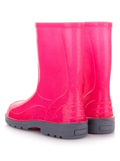 Dziewczęce kalosze w różowym kolorze z brokatem.