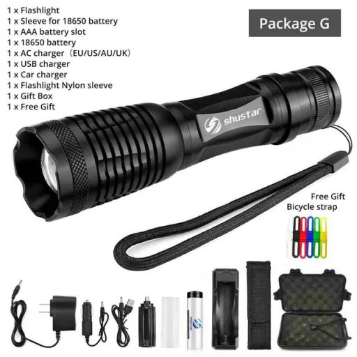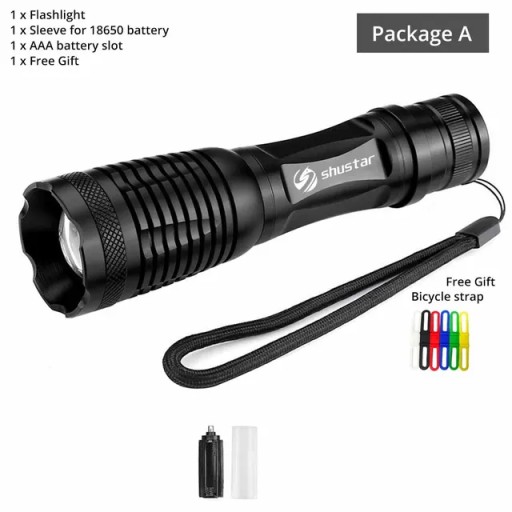 Numer/Liczba modelu:4000LMFunkcja:Odporna na wstrząsyOstre światłoDo samoobronyŁadowarka:Nie dotyczyDługość ogniskowej:RegulowanyŹródło światła:Żarówki LEDMoc:8W-15WMateriał korpusu:Z aluminiumCertyfikacja:ROHSceFCCCCCkolor:BlackTryb przełączania:Wysokie/Średnie/NiskieZoom:TakModel diod LED:T6Typ latarki:Campingclimbinghuntingfishingnight walk/rideWodoodporna:TakLumen:innyObsługa ściemniacza:5-8Zasięg oświetlenia:200-500 mNazwa marki:shustarPochodzenie:CN (pochodzenie)Typ artykułu:LATARKI