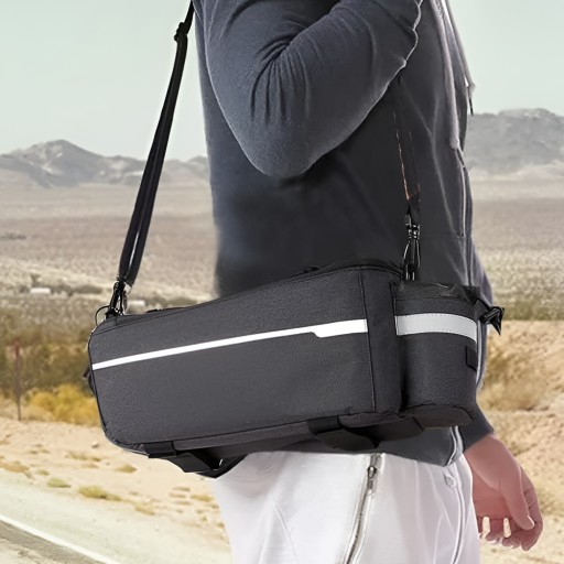 ✔️ Komfort Użytkowania: Dodatkowy, regulowany pasek na ramię o długości 130 cm pozwala na wygodne przenoszenie torby poza rowerem.