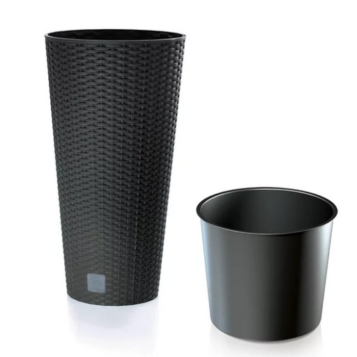 - Wysoka forma doniczki Rato w kolorze antracytowym, z wkładem wewnętrznym w komplecie