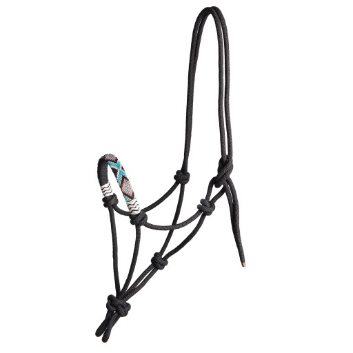 Piękny kantar sznurkowy z ozdobnym nachrapnikiem.