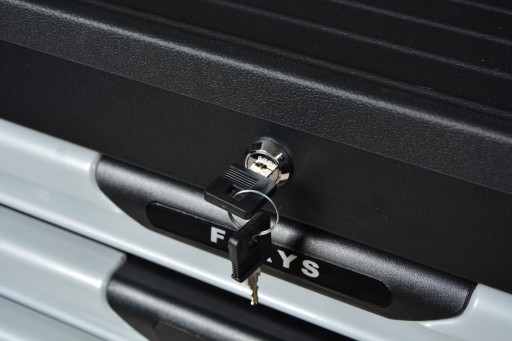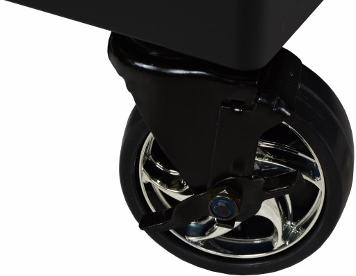 Wyposażona jest 4 kółka jezdne, w tym 2 z hamulcem, szuflady wyłożone pianką, oraz centralny zamek. Dodatkowym udogodnieniem jest blat z przegródkami.