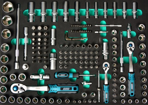 Szara szafka warsztatowa z wyposażeniem 171el. na mocnej piance