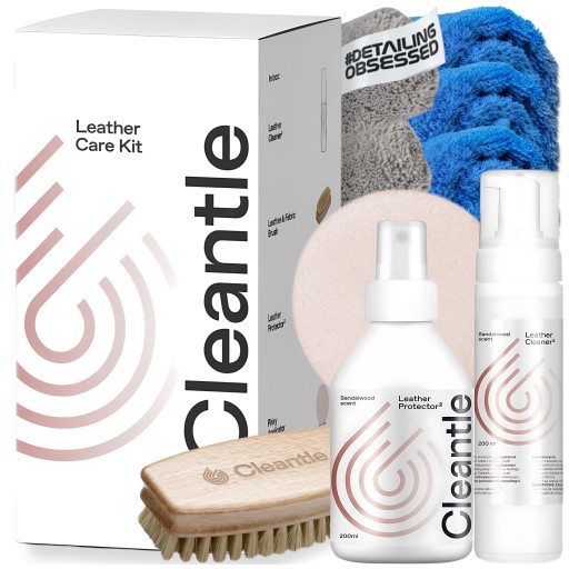 Leather Care Kit to kompletny zestaw do czyszczenia, pielęgnacji i zabezpieczania tapicerki skórzanej. Ten zestaw pozwoli dokładnie wyczyścić tapicerkę skórzaną za pomocą Leather Cleaner² i szczotki do skóry, by następnie nawilżyć ją i zabezpieczyć za pomocą Leather Protector² i aplikatora Pinky Pad lub delikatnej mikrofibry Daily Cloth.