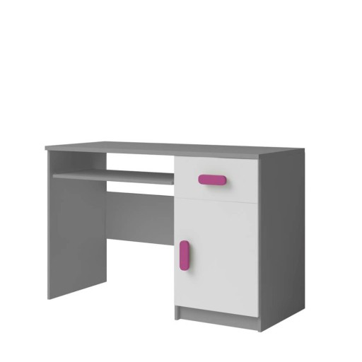 - Mebel wyposażony w półkę wysuwaną, która ułatwi korzystanie z komputera. Szuflada a pod nią szafka pomoże w przechowywaniu książek lub innych drobiazgów.Stylowym elementem są drewniane uchwyty dostępne w różnych kolorach.