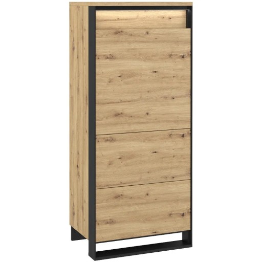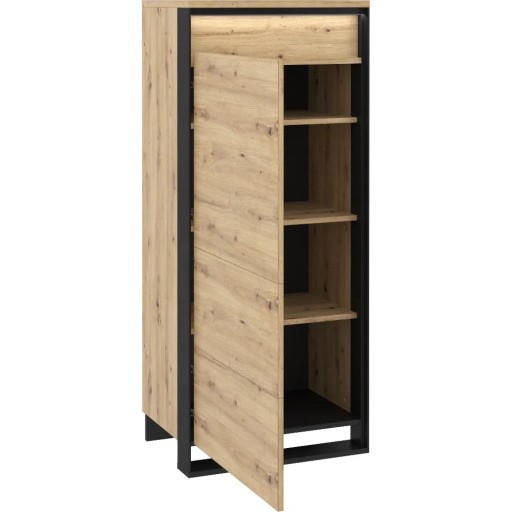 Komoda Quant producenta Lenart to połączenie minimalizmu i nowoczesności. Fronty w wybarwieniu dębu artisan wspaniale komponują się z czarnymi ramami. Całości dodaje uroku podświetlenie LED , które jest oferowane w standardzie. Komoda Quant za drzwiami posiada trzy pojemne półki . Nowoczesne wnętrze w industrialnym stylu? Wybierz kolekcję Quant!