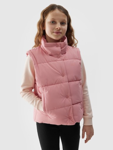 4F Bezrękawnik puchowy z wypełnieniem syntetycznym dziewczęcy - łososiowy