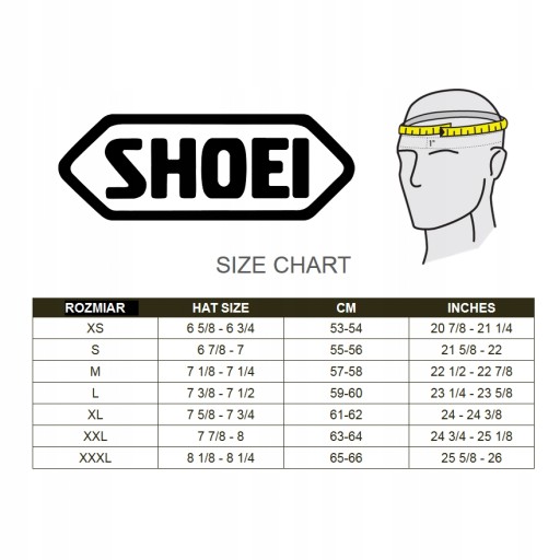 Rozmiar (obwód głowy): XS (53-54 cm), S (55-56 cm), M (57-58 cm), L (59-60 cm), XL (61-62 cm), XXL (63-64 cm).