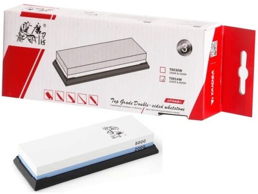 Namocz kamień w wodzie lub użyj oleju do ostrzałek firmy Taidea. Postaw ostrzałkę na płaskiej powierzchni. Zacznij wygładzać ostrze zaczynając od gradacji 2000. Dokończ polerowanie używając gradacji 5000. Ostrząc nóż staraj się zachować odpowiedni kąt pochylenia noża (15°-30°)
