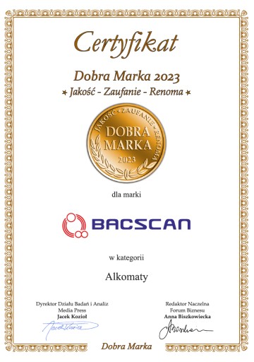 Marka alkomatów BACscan® została doceniona przez użytkowników i wyróżniona Certyfikatem Dobra Marka 2023!