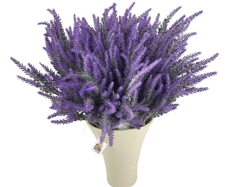 Realistycznie wykonany sztuczny bukiecik Lawendy, do złudzenia przypominająca żywą roślinę. Wyszukana ozdoba do dekoracji tarasów, balkonów oraz wnętrz komercyjnych, biur, domów i mieszkań.