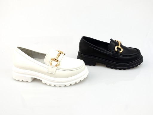 DZIEWCZĘCE WSUWANE LOAFERSY MOKASYNY PÓŁBUTY BIAŁE Z KLAMRĄ ekoskóra