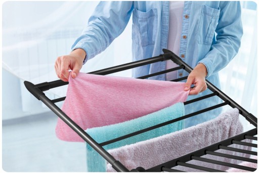 ✅Kiedy nie jest używana, suszarka składa się do niewielkich rozmiarów, dzięki czemu nie zajmuje dużo miejsca. Idealna dla małych mieszkań i domów z ograniczoną przestrzenią.