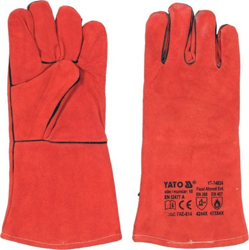 Rękawice spawalnicze YT-74824 typu A przeznaczone do wszystkich prac spawalniczych, polecane przede wszystkim do prac niewymagających dużej zręczności, np. spawanie metodą MIG/MAG oraz MMA. Spełniają wyższe wymogi dotyczące ochrony termicznej i mechanicznej. Wykonane ze skóry naturalnej, z dodatkową specjalną podszewką z dzianiny typu jersey, która nie tylko poprawia komfort pracy, ale stanowi ważny element dodatkowej ochrony przed ciepłem kontaktowym.