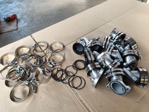 -W komplecie znajduje się także osiem opasek zaciskowych nierdzewnych ocynkowanych w klasie materiałowej W2 oraz cztery nowe Oringi od dołu króćca wykonane z materiału FPM - ODPORNOŚĆ NA TEMPERATURĘ: -20°C do +200 °C, krótkotrwale do 230°C