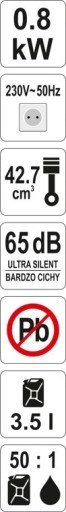 - maks. moc prądnicy: 880 W, moc stała: 800 W