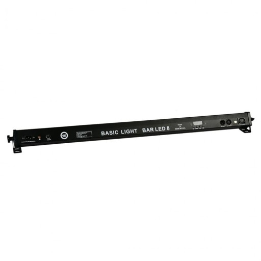 LIGHT4ME BASIC LIGHT BAR LED 8 RGB IR to nowoczesna, 8-sekcyjna listwa LED wyposażona łącznie w 240 diod operujących światłem w palecie RGB, którą dodatkowo możemy sterować zdalnie za pomocą bezprzewodowego pilota. Belka doskonale sprawdza się jako oświetlenie sceniczne, klubowe, w dekoracji światłem sali weselnych, pomieszczeń hotelowych i restauracyjnych, a także jako oświetlenie architektoniczne do podświetlania różnych elementów wystroju wnętrz.