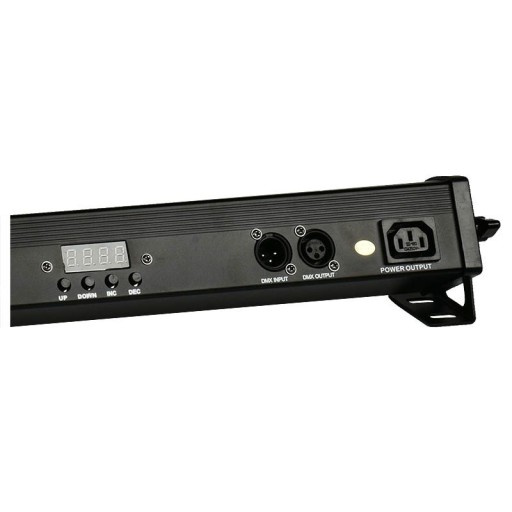 Naświetlacz LED ma całkowitą długość ponad 1 metra. Gęsty system diod RGB podzielony został na 8 niezależnych sekcji. Dzięki temu możliwe jest tworzenie zróżnicowanych efektów świetlnych i ciekawych zestawień kolorystycznych. Stosunkowo duży kąt świecenia zapewnia szeroki zakres pokrycia światłem dedykowanej przestrzeni. Uchwyty po obu stronach korpusu umożliwiają pracę listwy w pozycji stojącej lub jej instalację na rampach oświetleniowych i kratownicach scenicznych.
