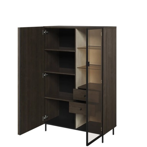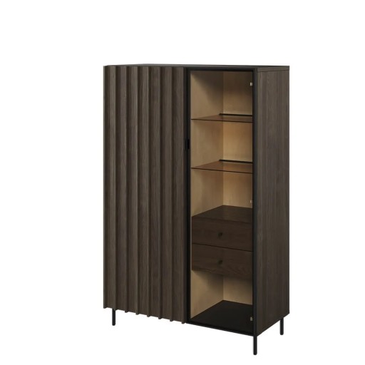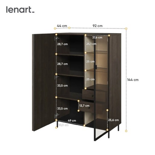 Przede wszystkim, nowoczesna witryna wyróżnia się swoją pojemnością . Dzięki wielu półkom i szufladom, zapewnia wystarczająco dużo miejsca do przechowywania różnych przedmiotów, takich jak książki, dekoracje, pamiątki czy zastawa stołowa. Witryna PE-06 posiada także wbudowane oświetlenie , które dodatkowo podkreśla przechowywane przedmioty i ich piękno.