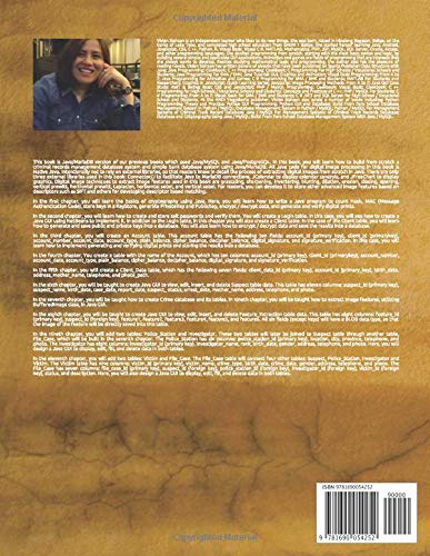 This book is Java/MariaDB version of our previous books which used Java/MySQL and Java/PostgreSQL. In this book, you will learn how to build from scratch a criminal records management database system and simple bank database system using Java/MariaDB.In the first chapter, you will learn the basics of cryptography using Java. Here, you will learn how to write a Java program to count Hash, MAC (Message Authentication Code), store keys in a KeyStore, generate PrivateKey and PublicKey, encrypt / decrypt data, and generate and verify digital prints.In the second chapter, you will learn how to create and store salt passwords and verify them. You will create a Login table. In this case, you will see how to create a Java GUI using NetBeans to implement it. In addition to the Login table, in this chapter you will also create a Client table. In the case of the Client table, you will learn how to generate and save public and private keys into a database. You will also learn how to encrypt / decrypt data and save the results into a database.In the third chapter, you will create an Account table. This account table has the following ten fields: account_id (primary key), client_id (primarykey), account_number, account_date, account_type, plain_balance, cipher_balance, decipher_balance, digital_signature, and signature_verification. In this case, you will learn how to implement generating and verifying digital prints and storing the results into a database.In the fourth chapter, You create a table with the name of the Account, which has ten columns: account_id (primary key), client_id (primarykey), account_number, account_date, account_type, plain_balance, cipher_balance, decipher_balance, digital_signature, and signature_verification.In the fifth chapter, you will create a Client_Data table, which has the following seven fields: client_data_id (primary key), account_id (primary_key), birth_date, address, mother_name, telephone, and photo_path.In the sixth chapter, you will be taught to create Java GUI to view, edit, insert, and delete Suspect table data. This table has eleven columns: suspect_id (primary key), suspect_name, birth_date, case_date, report_date, suspect_ status, arrest_date, mother_name, address, telephone, and photo. In the seventh chapter, you will be taught how to create Crime database and its tables. In nineth chapter, you will be taught how to extract image features, utilizing BufferedImage class, in Java GUI.In the eighth chapter, you will be taught to create Java GUI to view, edit, insert, and delete Feature_Extraction table data. This table has eight columns: feature_id (primary key), suspect_id (foreign key), feature1, feature2, feature3, feature4, feature5, and feature6. All six fields (except keys) will have a BLOB data type, so that the image of the feature will be directly saved into this table. In the nineth chapter, you will add two tables: Police_Station and Investigator. These two tables will later be joined to Suspect table through another table, File_Case, which will be built in the seventh chapter. The Police_Station has six columns: police_station_id (primary key), location, city, province, telephone, and photo. The Investigator has eight columns: investigator_id (primary key), investigator_name, rank, birth_date, gender, address, telephone, and photo. Here, you will design a Java GUI to display, edit, fill, and delete data in both tables.In the eleventh chapter, you will add two tables: Victim and File_Case. The File_Case table will connect four other tables: Suspect, Police_Station, Investigator and Victim. The Victim table has nine columns: victim_id (primary key), victim_name, crime_type, birth_date, crime_date, gender, address, telephone, and photo. The File_Case has seven columns: file_case_id (primary key), suspect_id (foreign key), police_station_id (foreign key), investigator_id (foreign key), victim_id (foreign key), status, and description.
