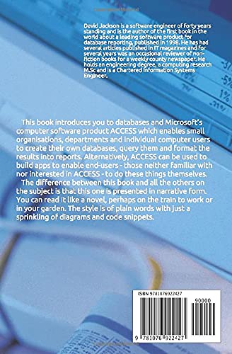 This book introduces you to databases and Microsoft’s computer software product ACCESS which enables small organisations, departments and individual computer users to create their own databases, query them and format the results into reports. Alternatively, ACCESS can be used to build apps to enable end-users - those neither familiar with nor interested in ACCESS - to do these things themselves. The difference between this book and all the others on the subject is that this one is presented in narrative form. You can read it like a novel, perhaps on the train to work or in your garden. The style is of plain words with just a sprinkling of diagrams and code snippets.