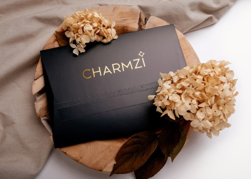 Produkt zapakowany w ekskluzywną czarną kopertę ze złotym logo producenta marki Charmzi, dzięki czemu idealnie nadaje się na prezent.