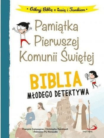 40 biblijnych historii Chcesz sprawić, aby Biblia stała się ciekawą lekturą dla młodego czytelnika? Podaruj mu Biblię młodego detektywa - oryginalną książkę, przedstawiającą 14 najpopularniejszych historii ze Starego Testamentu i 14 z Nowego Testamentu w intrygujący sposób.Lektura Biblii jak wielkie śledztwo Przez książkę prowadzą dziecko detektywi: Zosia i Tomek. Na początku każdego rozdziału znajduje się minikomiks z zabawnymi dialogami, a następnie biblijna opowieść napisana ciekawym i przystępnym językiem, wzbogacona o komentarze na marginesach, a także odnośniki, ciekawostki i ilustracje.Fragment oryginalnego tekstu Obok opowieści biblijnej zawsze znajduje się fragment oryginalnego tekstu. Pozwala to oswajać najmłodszych z lekturą Pisma Świętego.Wersja z obwolutą pierwszokomunijną Niniejsze wydanie wzbogacono o piękną, pierwszokomunijną obwolutę, która podkreśla charakter podarunku i czyni z książki idealny prezent na I Komunię Świętą.Książka otrzymała Nagrodę Stowarzyszenia Wydawców Katolickich FENIKS 2023 w kategorii: Książka dla dzieci
