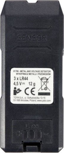 Wykrywacz zasilają baterie 3X1.5V (LR44).