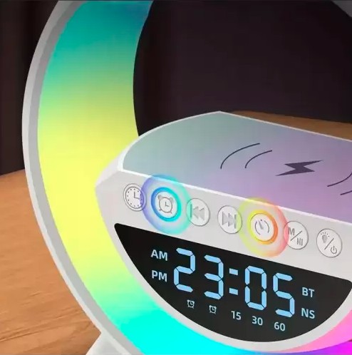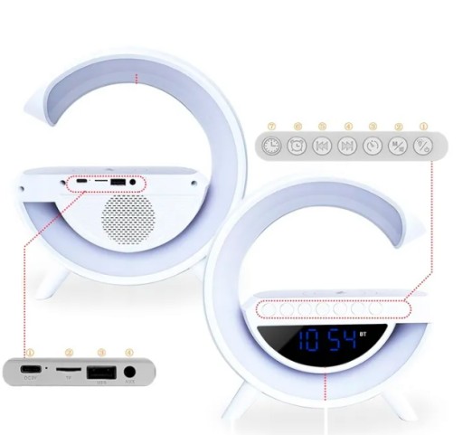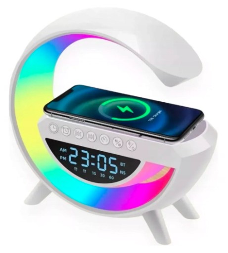 Inteligentna wielofunkcyjna lampka z ładowarką indukcyjną QI, głośnikiem Bluetooth LED RGB i zgarem z funkcją budzika to wielofunkcyjne urządzenie, które sprawdzi się na co dzień. Lampka umożliwi naładowanie smartfona.