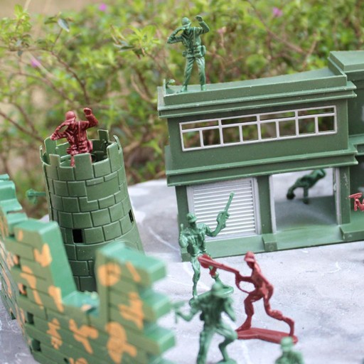Zawiera ok. 450 sztuk 4 cm figurki żołnierzy (kolory), biuro, 2 czołgi, 4 samoloty bojowe i inne akcesoria (wyślemy losowo, niektóre małe akcesoria będą inne)