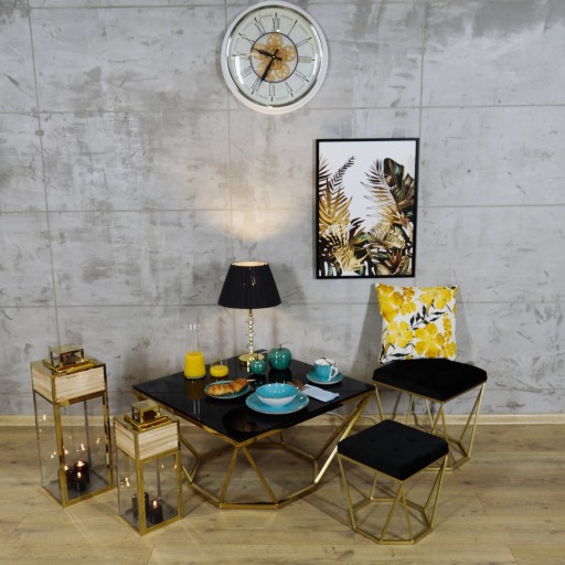 Siedzisko Oktana S/2 Czarny welur stelaż z stali malowanej proszkowo na kolor złoty Wymiary: L: 40x40x45cm S: 32x32x37cm