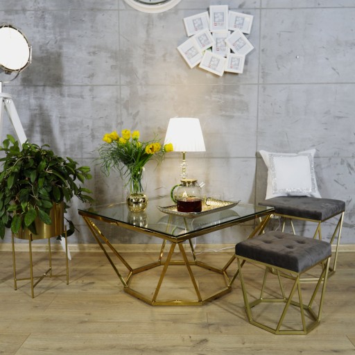 Siedzisko Oktana S/2 Szary welur stelaż z stali malowanej proszkowo na kolor złoty Wymiary: L: 40x40x45cm S: 32x32x37cm