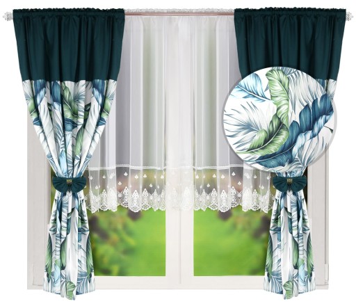 - Rozmiar: ( wysokość/ szerokość) firana 120x300 , zasłony 2 szt 155x145 cm