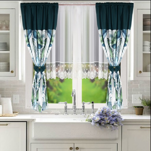 КОМПЛЕКТ ШТОР С ГОЛУБЫМИ ЛИСТЬЯМИ + ГОТОВАЯ ШТОРНАЯ ВУАЛЬ 400х160 С ЛЕНТОЙ