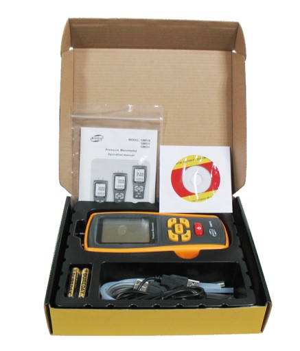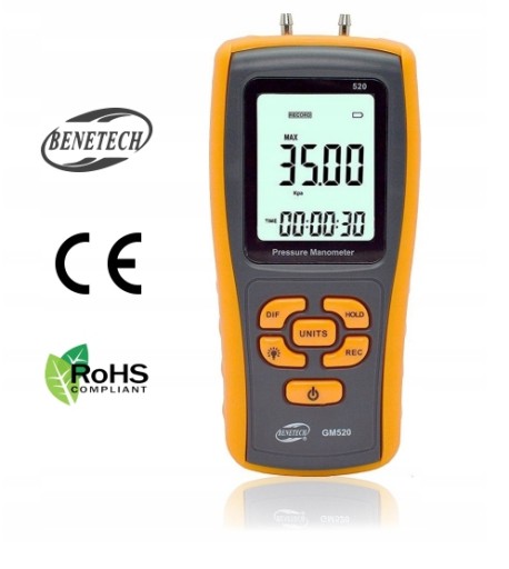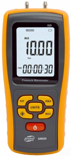 Cyfrowy manometr różnicowy - miernik ciśnienia GM520 marki Benetech.