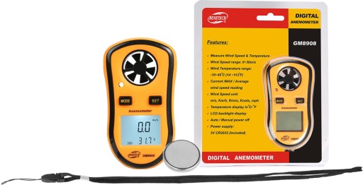 Wiatromierz GM8908 wykonany jest z dobrej jakości materiałów, jest lekki i wygodny w obsłudze, a zatem można go bez problemu stosować w trudno-dostępnych miejscach. Ponadto dzięki dołączonej smyczy, można go przypiąć do paska z narzędziami, szlufki w spodniach itp. zabezpieczając przed upadkiem. Urządzenie jest precyzyjne, a wyniki pomiarów dokładne – rozdzielczość pomiaru do jednego miejsca po przecinku (zależnie od wybranych jednostek). Odchylenie wskazań do +/- 5%. Do urządzenia dołączona jest instrukcja obsługi w języku polskim oraz bateria.
