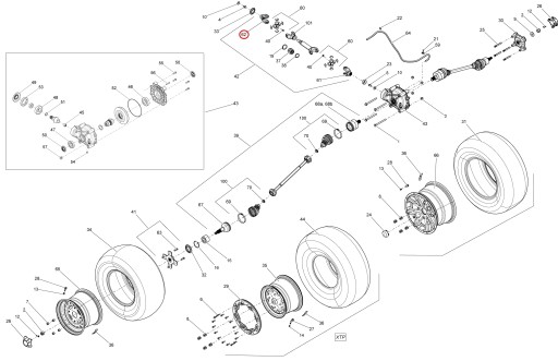 - Jarzmo tylnego wału napędowego wchodzące do skrzyni biegów