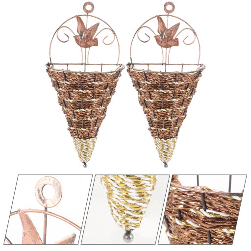 Плетеная подвесная корзина в форме конуса. Вешалки для горшечных растений