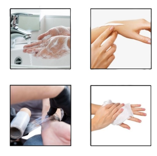 Mycie: Umyj określony obszar mydłem i osusz pokrycie.